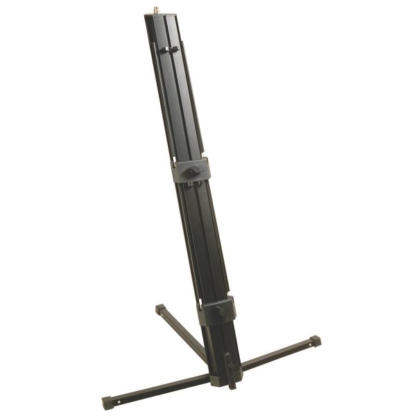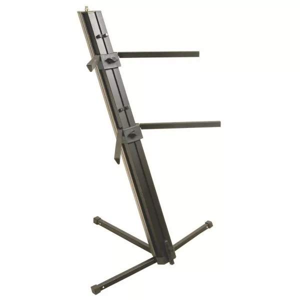 El soporte estilo columna cuenta con brazos de soporte que sostienen dos teclados
