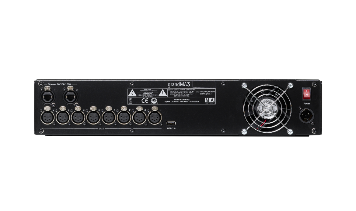 Las unidades de procesamiento grandMA3 están diseñadas para montaje en rack y todos los modelos ocupan solo 2RU, lo que permite soluciones eficientes para giras. Cada modelo está equipado con 8 salidas DMX para la salida DMX sincronizada con el cuadro en toda la red. Se pueden añadir salidas DMX sincronizadas con el cuadro mediante los nodos xPort grandMA3.
