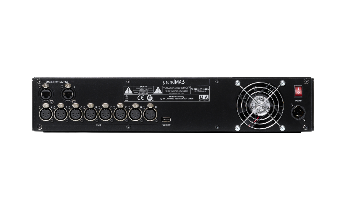 Las unidades de procesamiento grandMA3 están diseñadas para montaje en rack y todos los modelos ocupan solo 2RU, lo que permite soluciones eficientes para giras. Cada modelo está equipado con 8 salidas DMX para la salida DMX sincronizada con el cuadro en toda la red. Se pueden añadir salidas DMX sincronizadas con el cuadro mediante los nodos xPort grandMA3.